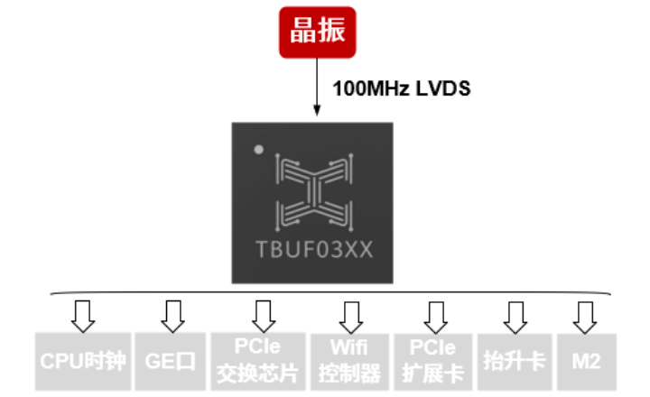 | TBUF0320 | 3.3V | 晶体/单端/差分 | LP-HCSL | 400MHz | <30fs | 20 | -40℃~85℃ | LGA80 |